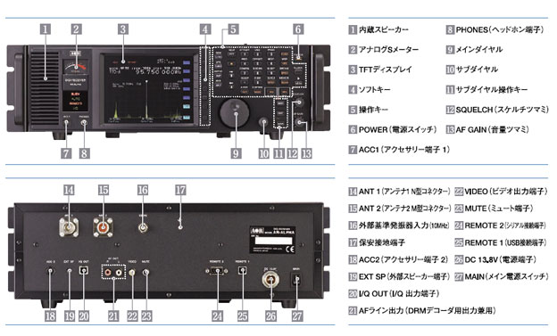 生産終了しました。※この商品はすぐ使える割引クーポンが利用できます。広帯域プロ仕様受信機 AR-ALPHA斬新的で未来志向のデジタル処理とI/Q出力を標準装備したプロ様の広帯域受信機 PERSEUSのデザイナーであるNico Palermo氏の開発チームにより設計されたPC用の帯域記録ソフト、AR-IQが標準装備 1MHz幅での受信帯域記録と再生、分析が可能 ●10KHz〜3.5GHzを1Hzステップで連続カバーし、様々な電波形式、通信形式を受信可能。 ●独自のFETスペクトラム・ディスプレーにより最大1Gzの帯域内の電波状況を観測可能。 ●高品位のフロントエンドのRF入力部にフィルタ群、RFアンプ、アッテネータ、RF技術を搭載。 ●OCXOを標準搭載。精度±0.1ppmを確保。 ●DSP処理段ではデジタルIFフィルタを装備。状況応じて通過帯域を選択可能。 ●デジタル処理を最大限に利用したマルチモード対応を実現。ノイズリデューサーや各種復調補助回路の提供可能。 ●デジタルAFフィルタ、自動ノッチフィルタ、IFシフト、ノイズリデューサー、ノイズリダクション音声反転スクランブラー、空線キャンセラー、DSC、CTCSS、レベルスケルチ、音声スケルチなど充実した機能装備。 ●高精細6.4インチTFT液晶ディスプレー採用。映像方式に対応TV信号の受信やFM方式の画像の受信可能。 ●高速スペクトラムスコープを搭載。WSPモードで20MHz/50MHz/100MHz/1000MHz幅を表示可能。 ●第2IF以降をすべてデジタル処理して検出レベルも安定し高精度を実現。 ●広帯域受信機に初のゼロIF方式を採用。I/Qミクサは直線性と直交性に優れイメージ信号のセルフキャンセルが可能。 ●第1局部発信器は高速なDDSで構成。PLL方式と比較して高速で安定した動作を実現。メモリースキャンは70ch/secという高速スキャンが可能。 ●第2IFから生成したI/Q信号のUSB2.0出力を装備。PCなどの外部装置による信号処理や記録が可能。 ●I/Q信号は、仮数が13ビットと指数4ビットの浮動小数点で表示可能。実際の受信信号とほとんど等しい状況が記録でき、各種信号解析や信号処理の信号源として応用可能。 【詳細PDF】 ●AOR AR-ALPHAの詳細 (PDF 4.6 MB)はこちら 【おもな付属品】ACアダプター・DC電源コード・パソコンソフト(CD)・取扱説明書【オプション】専用アンテナ切替器AS-5000 録音用出力ケーブルCR-5000